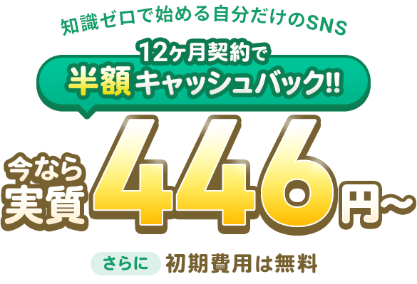 12ヶ月のご契約で、月額料金を半額キャッシュバック!